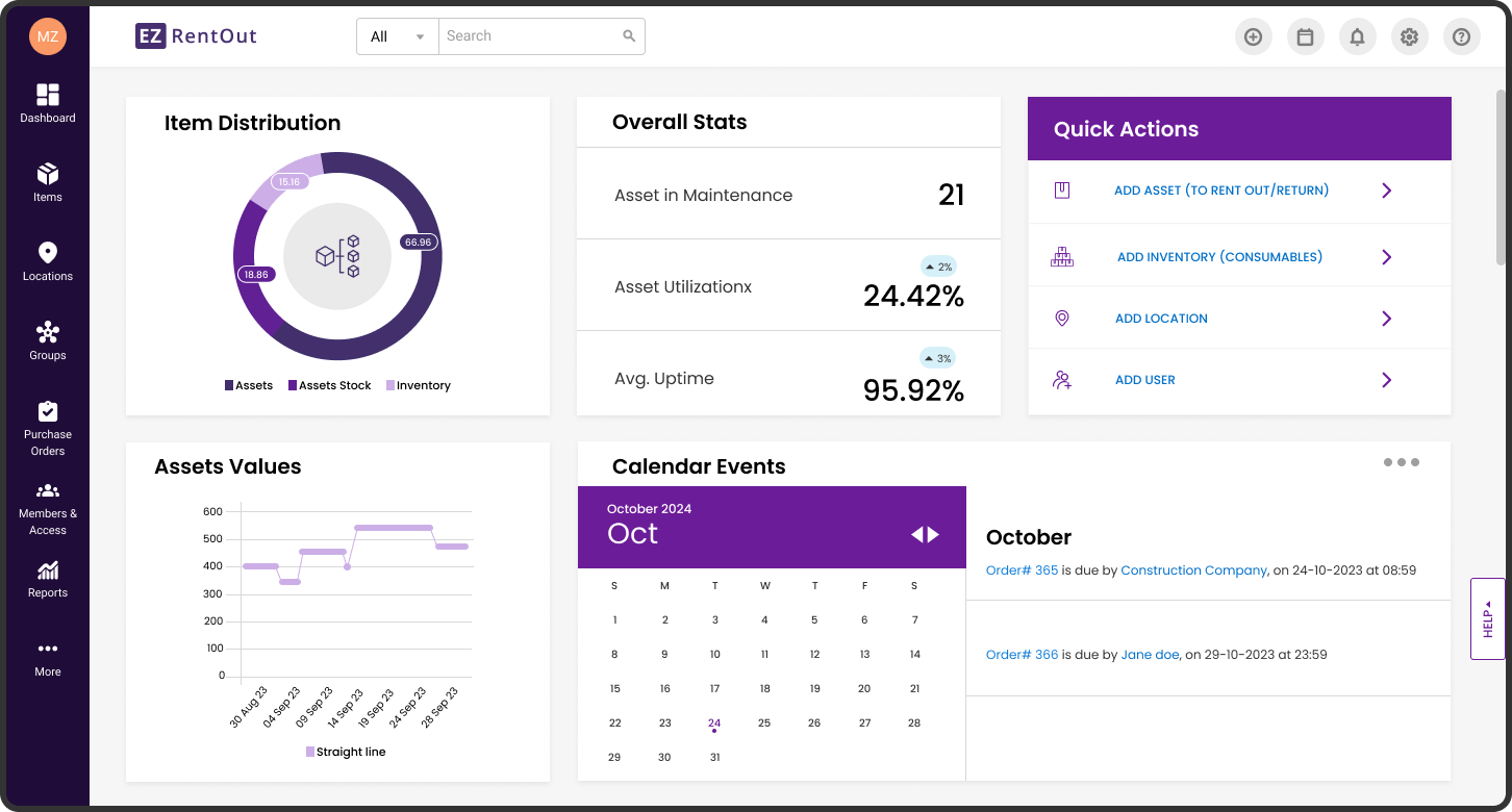 EZRentOut streamlines your rental operations with in-app order management, customer relationship tracking, and centralized control over workflows. From quotes to rentals, asset management, maintenance, and financial reporting, get an all-in-one solution. Accelerate the sales cycle by offering precise equipment information and pricing online. Enable customers to make reservations independently without the need of sales agents or other intermediaries.