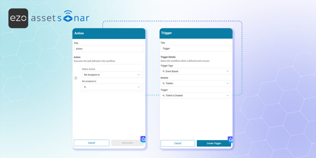 - Set the Trigger: Select an event-based trigger from the node menu, such as “Ticket is Created.”