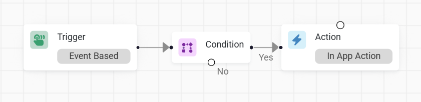- The canvas also automatically creates Yes and No branches, which may then be linked to the relevant actions, depending on what you want to automate when the conditions are either true or false.