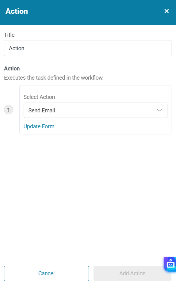 - You may add multiple actions following the same workflow and then click Add Action to add the action(s).