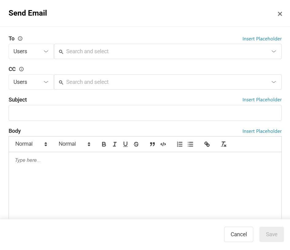 Tip: The email can be sent to specific users, teams, or roles by changing the recipient type from the To dropdown.