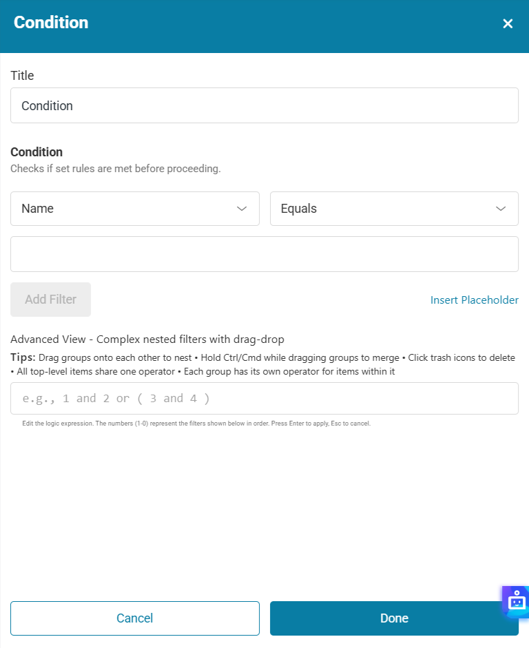 Please note that this is a dynamic field, and you’ll be able to view the placeholders relevant to the automation you are creating.