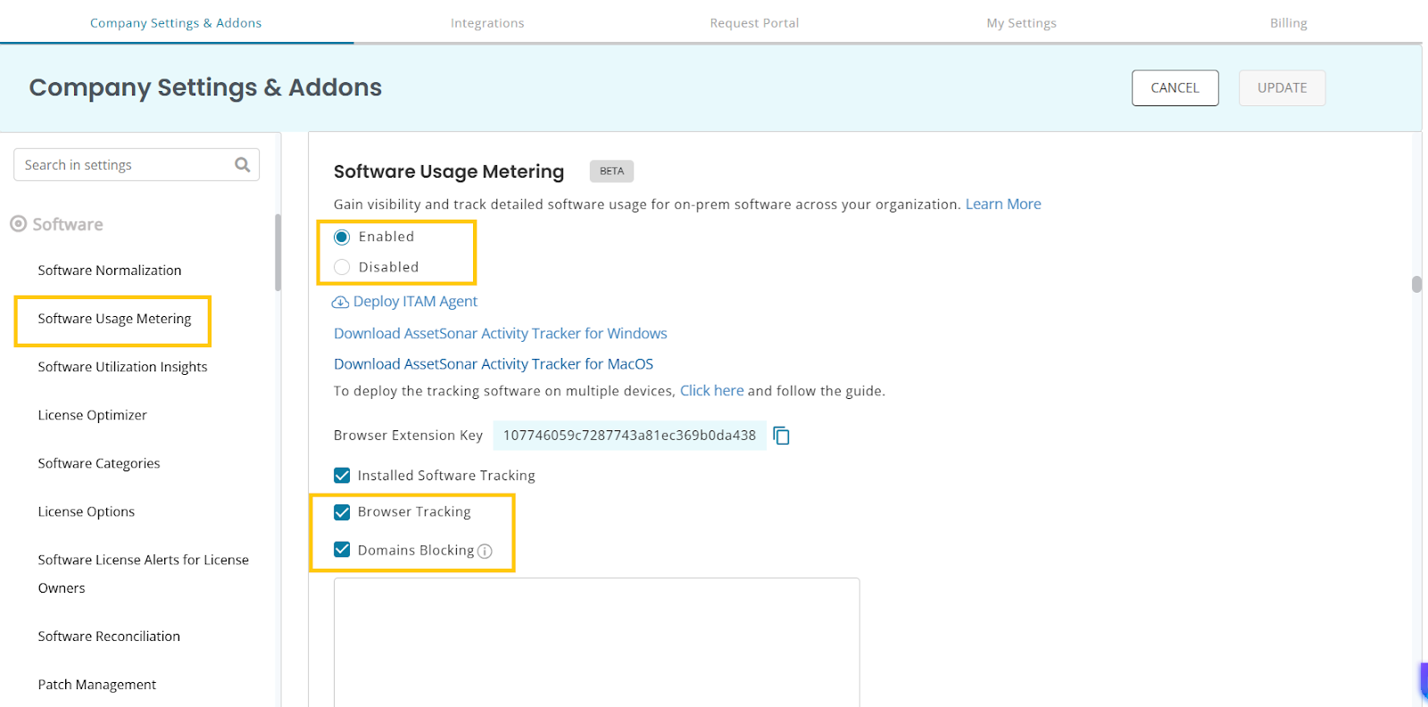 - Go to Settings → Software → Software Usage Metering.