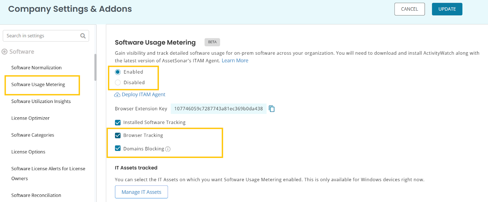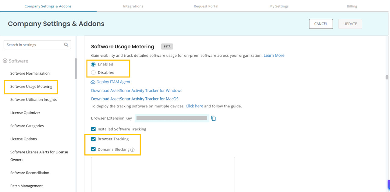 - Go to Settings → Software → Software Usage Metering.