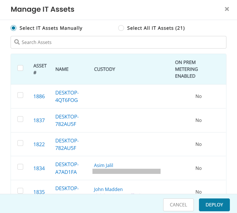 - Click on Manage It Assets to view and select the relevant IT assets (or all of them).