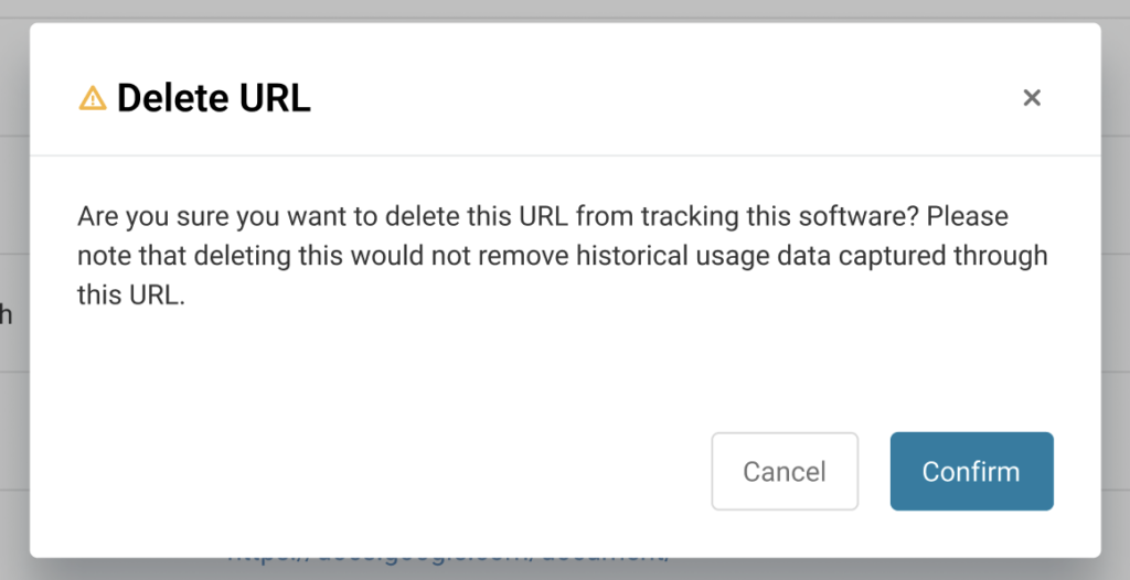 Please note that if you want to delete a URL from the list and there is some activity already tracked for that software, AssetSonar will keep the record and won’t delete it with the deletion of the URL.