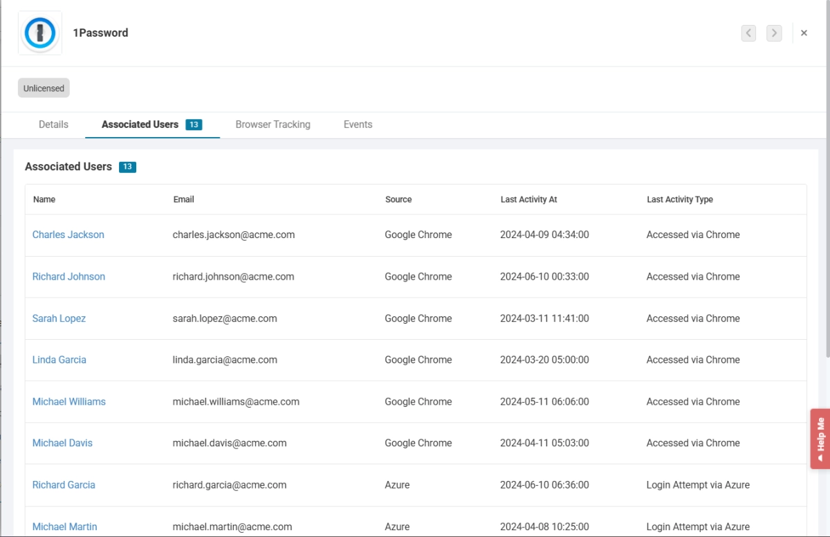 This feature also allows you to view the activities on the tracked URLs with the time stamps. Go to the ‘Associated Users’ tab, and you’ll get a list of the users accessing the software. Here is a screenshot of the tab: