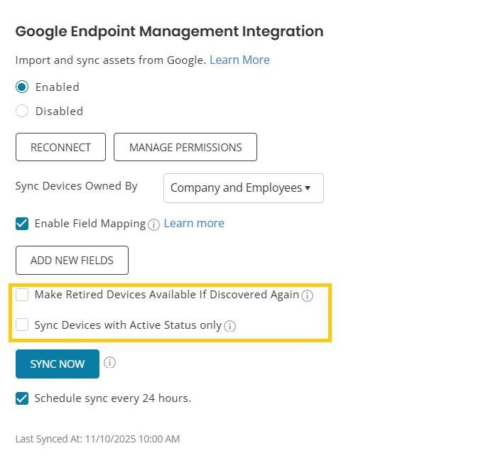 This option automatically marks previously retired devices as “Available” if they are detected again during a sync.