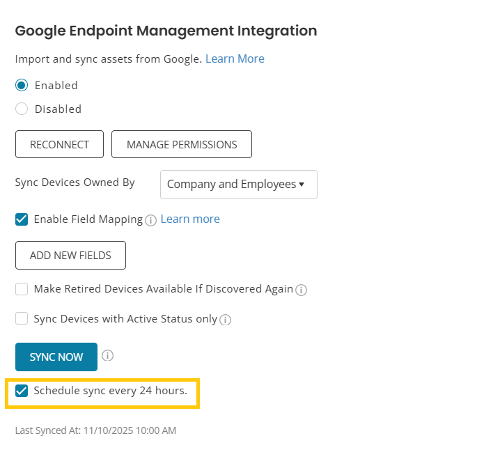 Pulls all Android and iOS devices enrolled in your Google Workspace account. - Sync Chromebooks