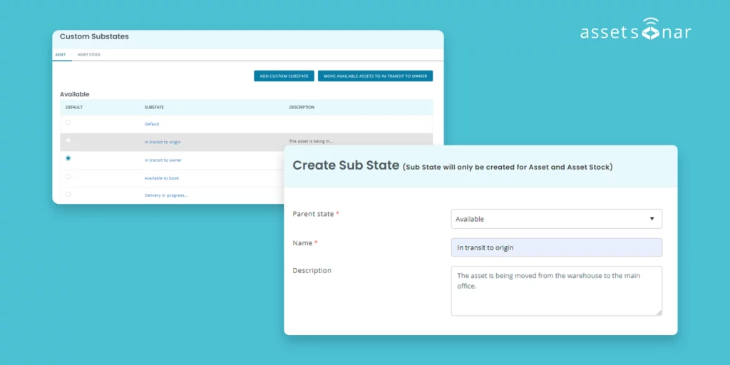 - Increased visibility: Substates provide clarity to users regarding the stage of an asset. For instance, if an Operations Manager needs to check out an asset, they could see if it is available and whether it is in transit and make decisions accordingly.