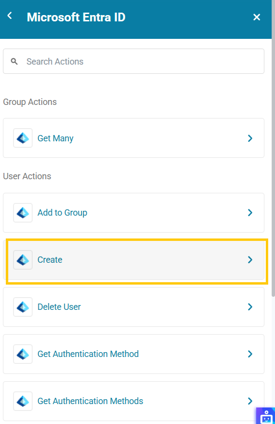 - Action: Choose the specific operation. For this example, select Create User. (Other common actions across apps include Get Details, Update, or Delete).