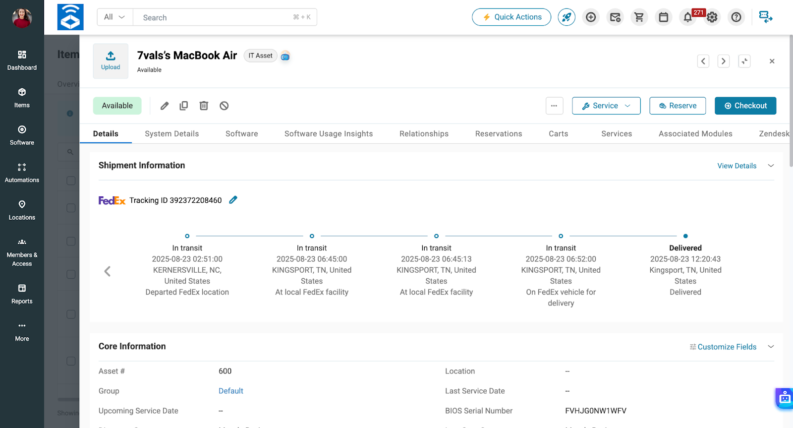 With shipment tracking now tied directly to assets, teams can monitor repair and return workflows without switching tools or manually checking carrier portals.
