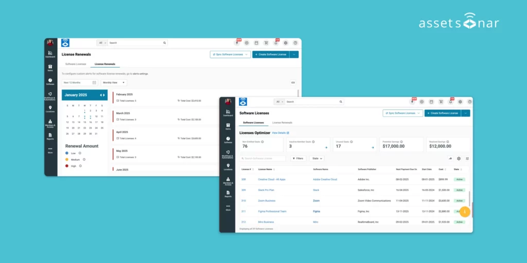 Efficient license management includes optimizing license utilization to reduce costs. AssetSonar’s License Optimizer already identifies potential savings. Now, this capability is integrated into the License Renewals page.