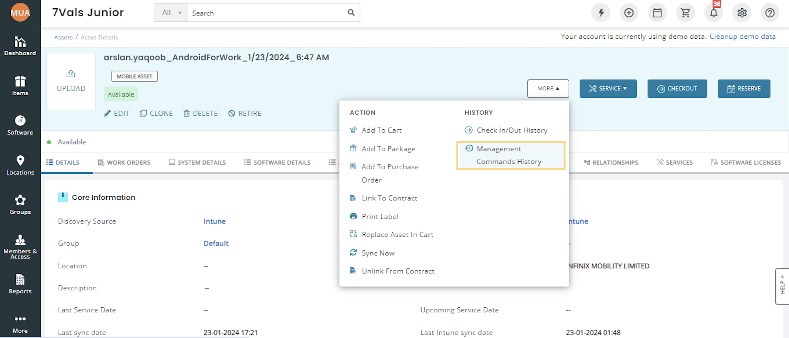 You’ll also be able to view the MDM Management Commands history by clicking on More and then on ‘Management Commands History’ as shown: