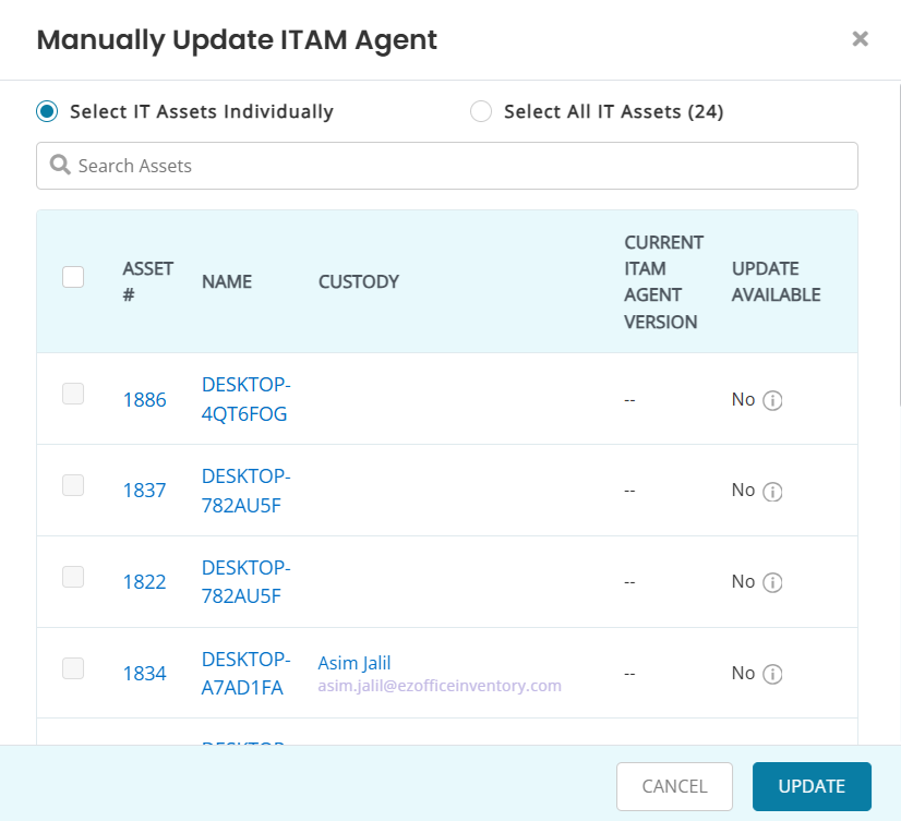 OR - Use Select All IT Assets to update all eligible assets at once and then click Update.