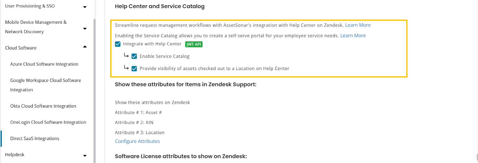 After you click Integrate with Help Center, you can also enable: Provide visibility of assets checked out to a location on Help Center.