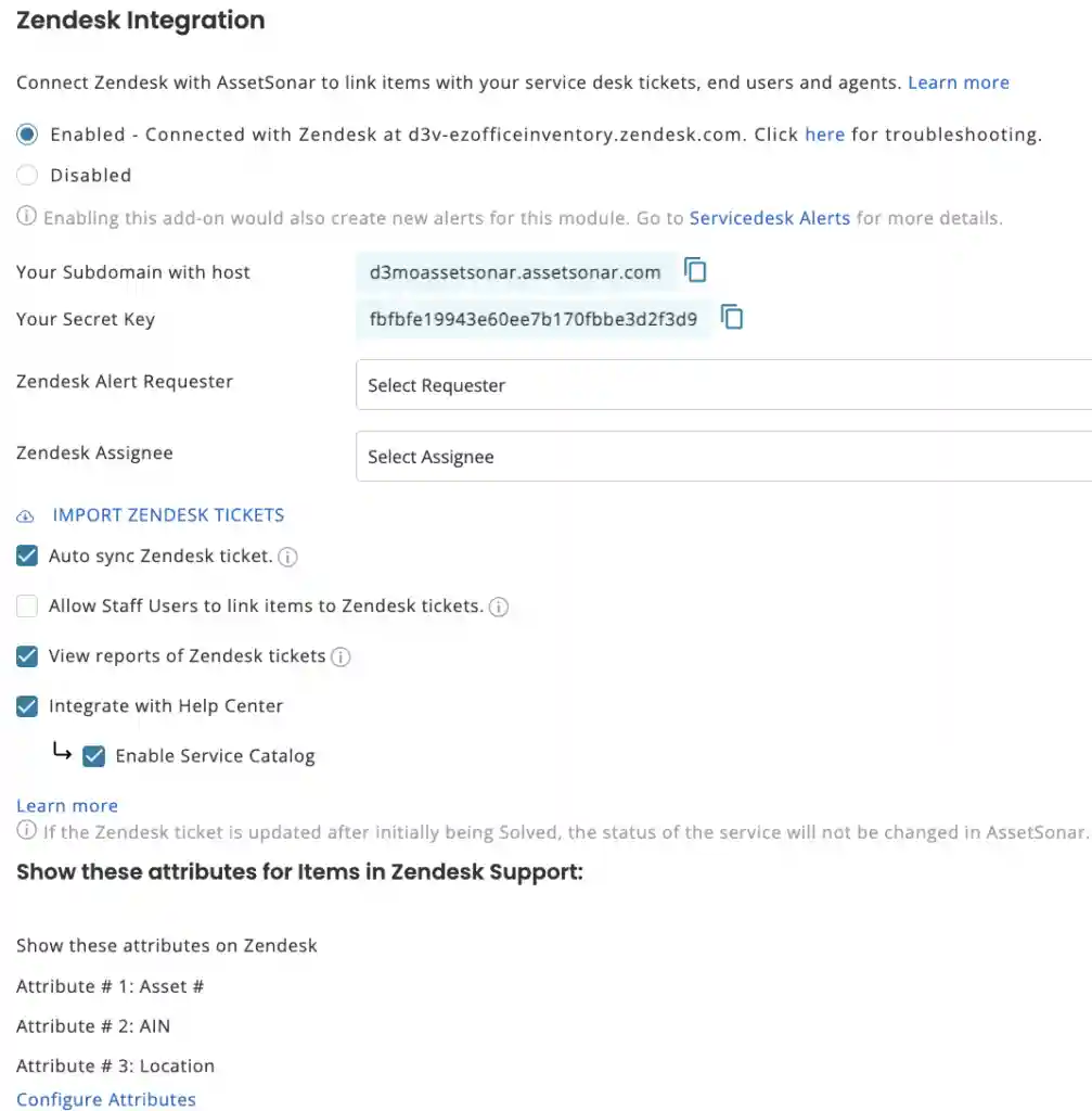 To learn more about how to enable the Zendesk integration in AssetSonar, click here.