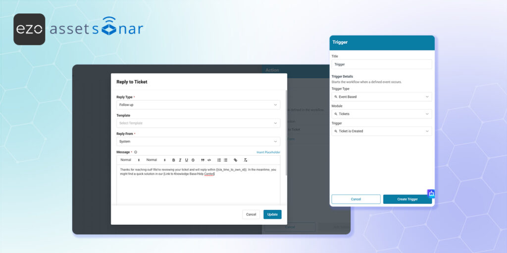 {{ticket.id}}) to dynamically insert the new ticket number and provide a direct link back to the portal so they can check their status. - Activate: Toggle the workflow status switch to Active so the engine immediately begins dispatching your custom acknowledgment for every new request.