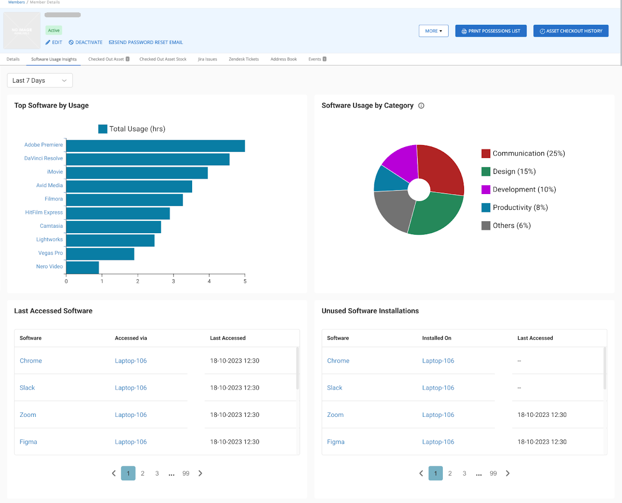 Open Members & Access → Member Name → Software Usage Insights to explore:
