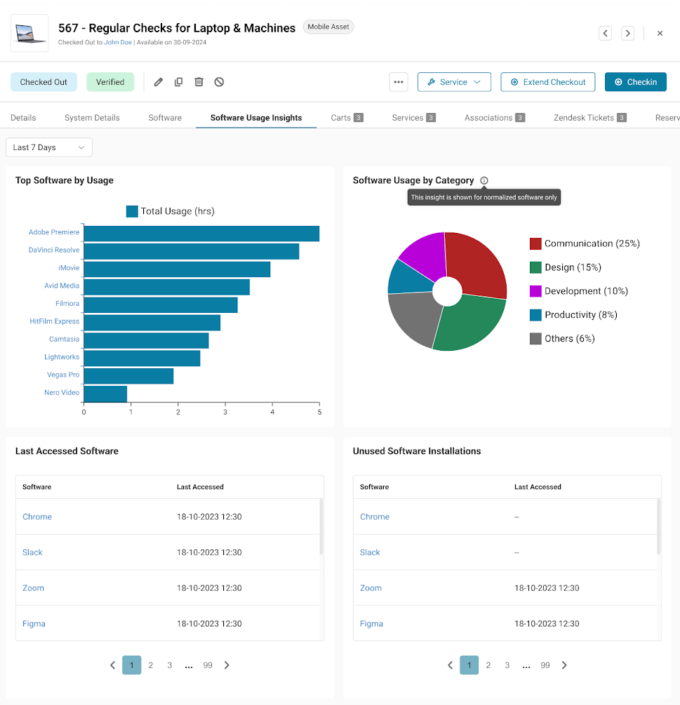 Go to Items (Navigation Menu) → Assets → Asset Name → Software Usage Insights to see: