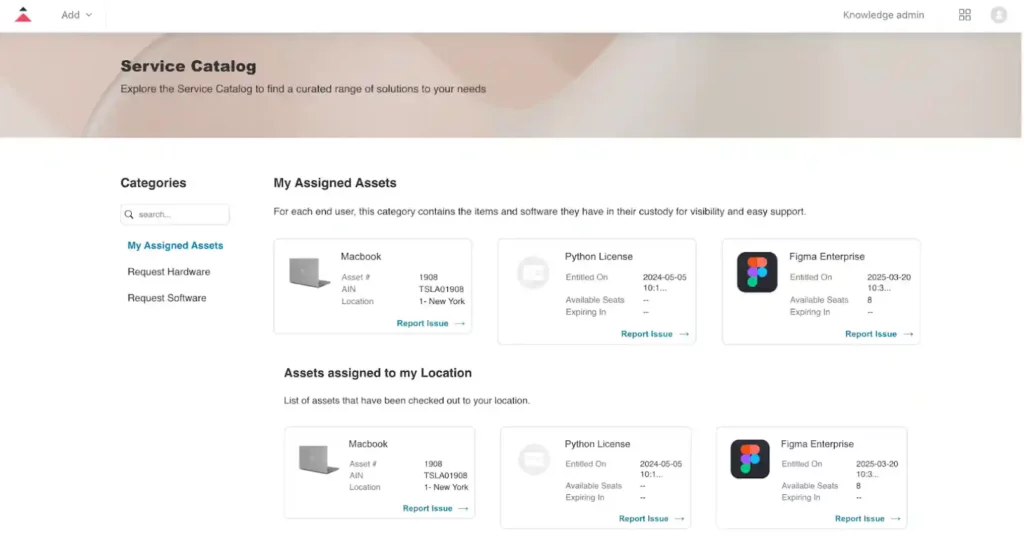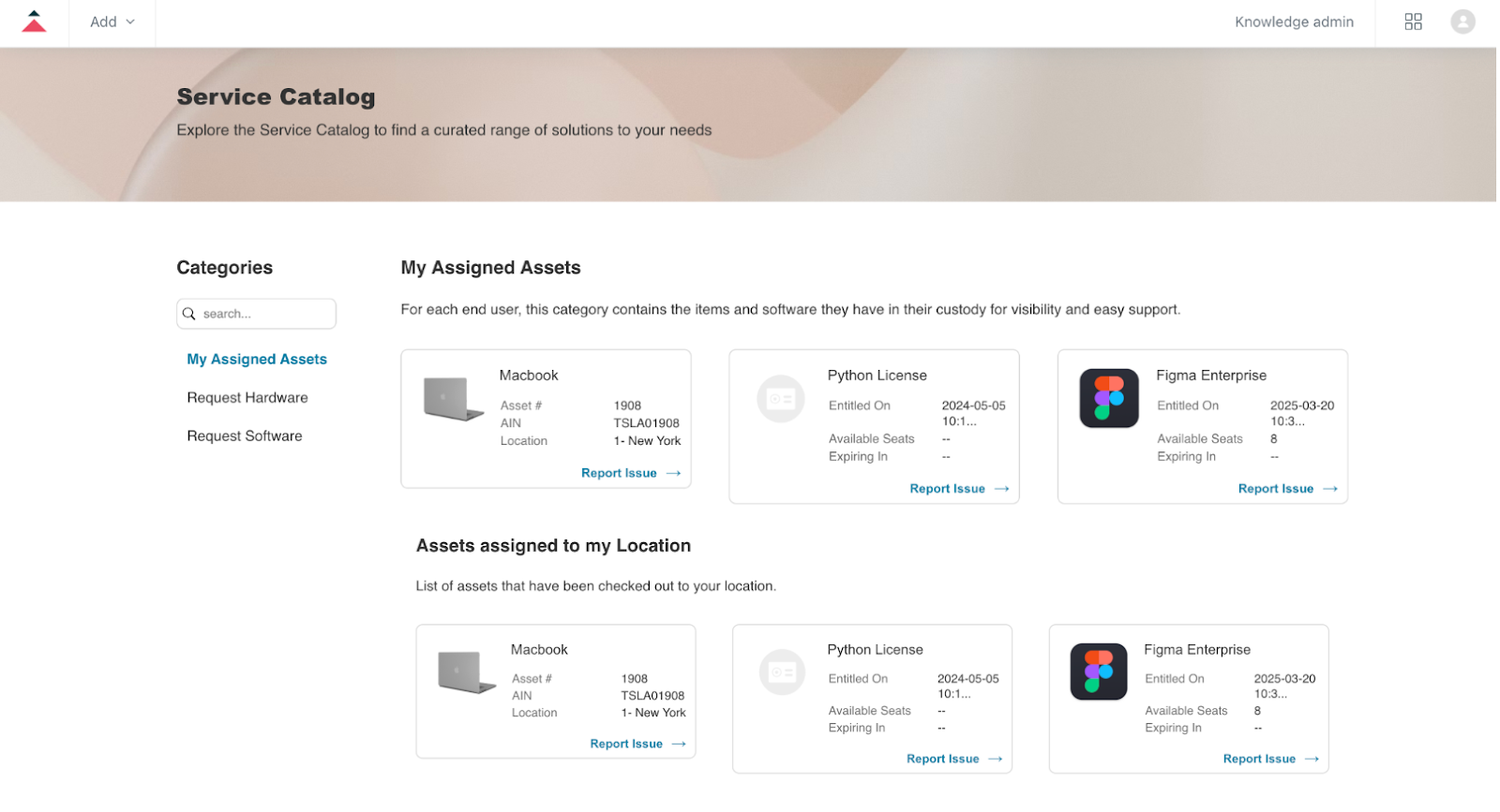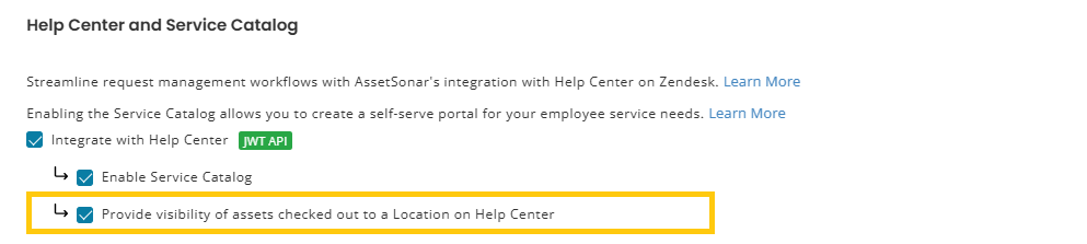If your organization uses the Checkout to Location feature, you can also enable a setting that allows end-users to view assets checked out to their location directly within Zendesk Help Center and Service Catalog.