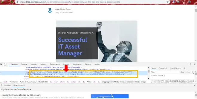 These are the web addresses that direct you to media files uploaded online. You can access these by right-clicking on an image, hitting ‘Inspect’, and viewing the source attribute (more on that below). However, it is important to note that these addresses appear differently depending on the domain. For this reason, you might have to edit your links before you can add them to your Excel file, prior to the import.