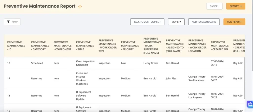 EZO CMMS is a maintenance management system that automatically compiles critical equipment data into actionable reports. With the new AI capabilities you don’t even need to set up a report, you can simply ask the chatbot to prepare one by following your instructions. Voila! That’s the best of automation that you can get. Start your ROI tracking journey with EZO today to run actionable reports.