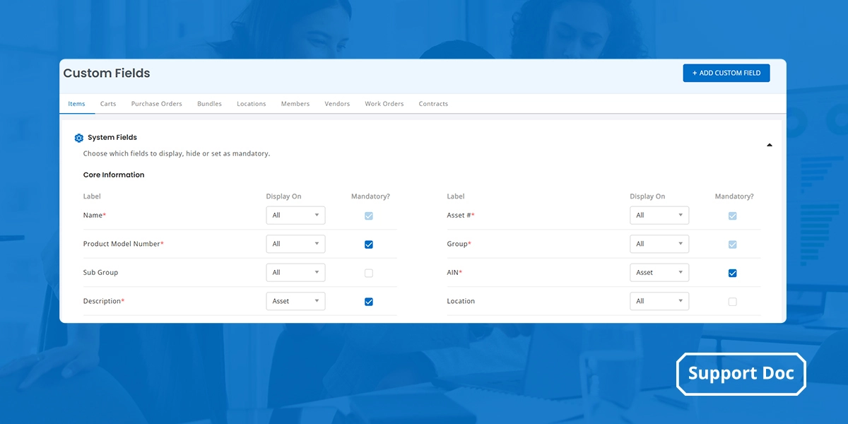 Custom Forms gives you the flexibility to alter the field settings before and after the creation of Items. For instance, you might need to make the AIN field mandatory after you start using barcodes in EZO. You can do that quickly by simply going to Custom Forms.ย ย