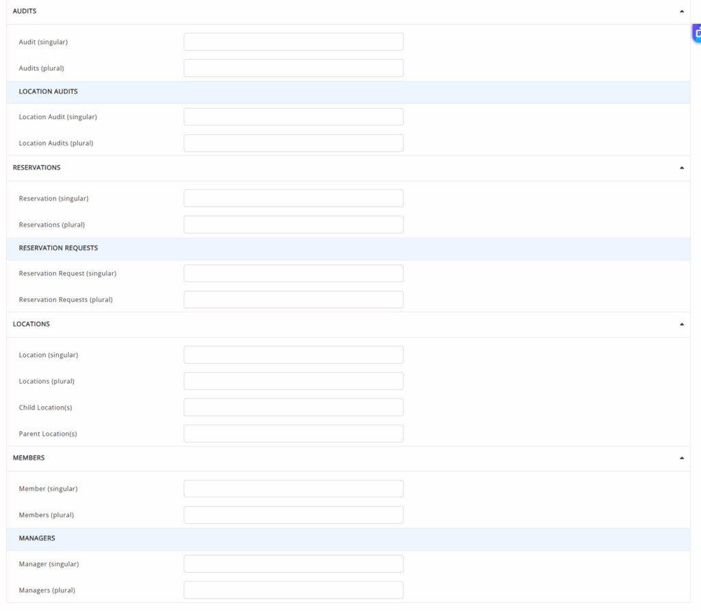 Apart from Asset, Asset Stock and Inventory you can also enter custom names for Carts and Work Orders.