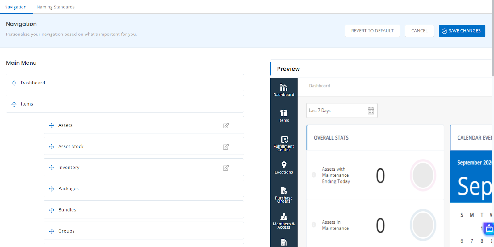 On the Navigation tab, you can switch positions of the current modules to customize the left navigation bar based on the modules you use more frequently. For instance, we’ve moved the Bundles module from More to Main Menu based on high use of this module. You can view changes in the Preview section.