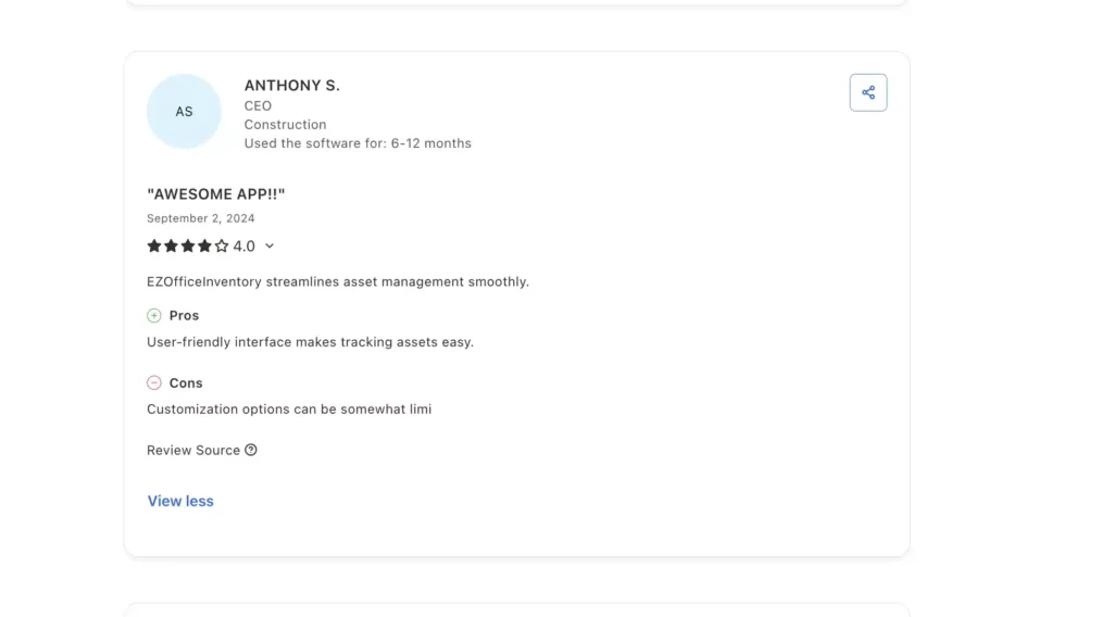 - Limited contractor and subcontractor network management: EZO provides strong internal equipment control, but it is less focused on managing external contractor ecosystems, such as tracking third-party equipment, vendor performance, or subcontractor-driven workflows in complex construction environments.