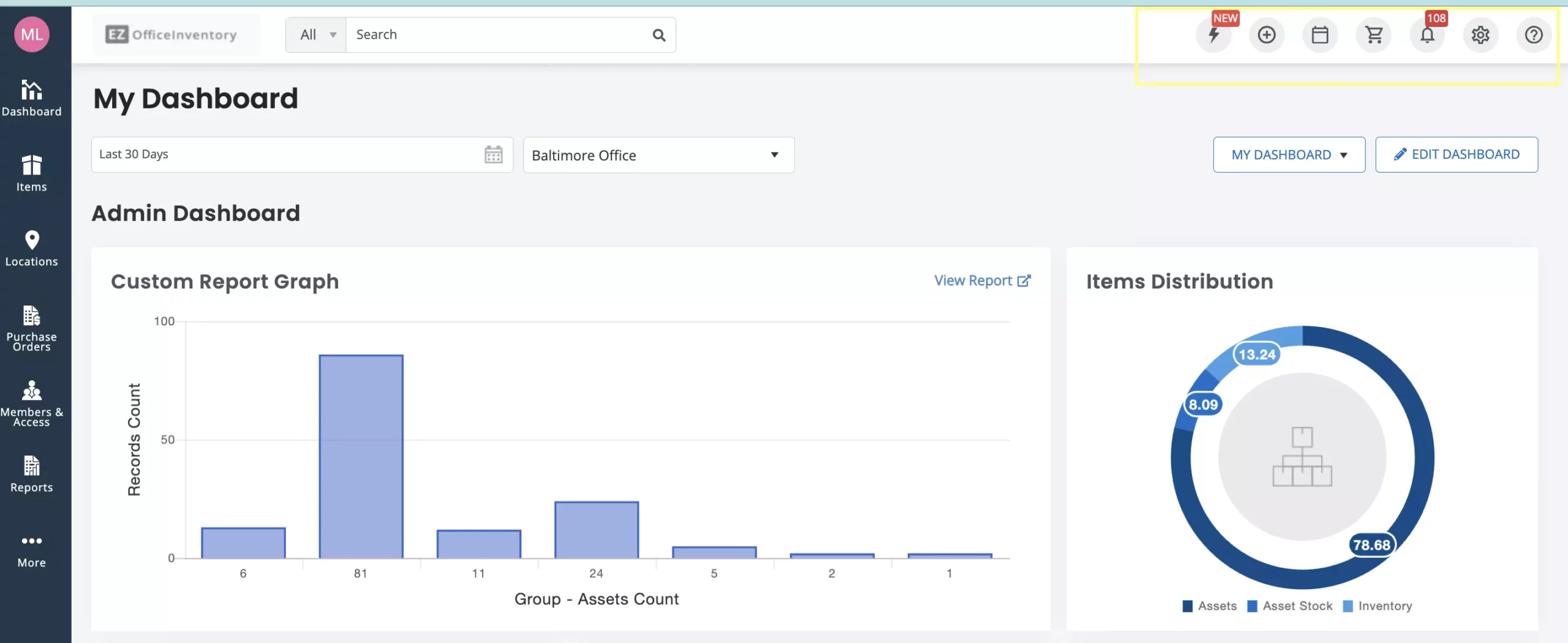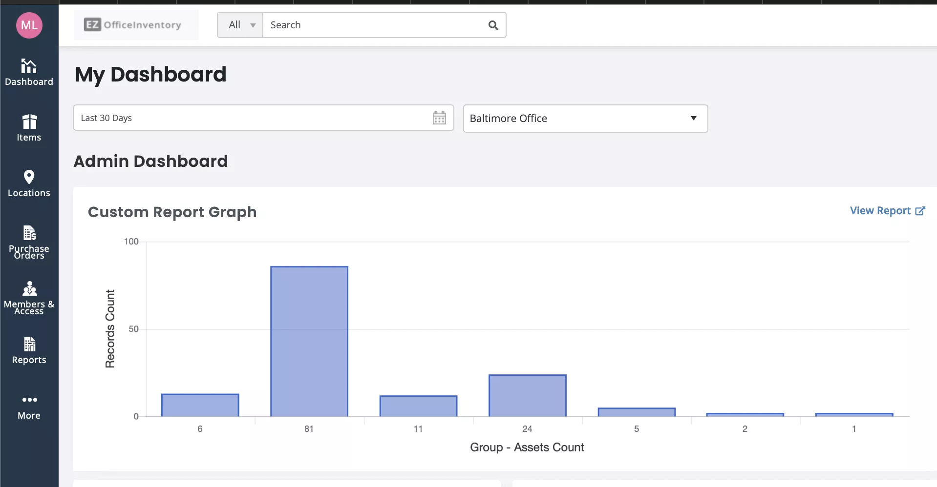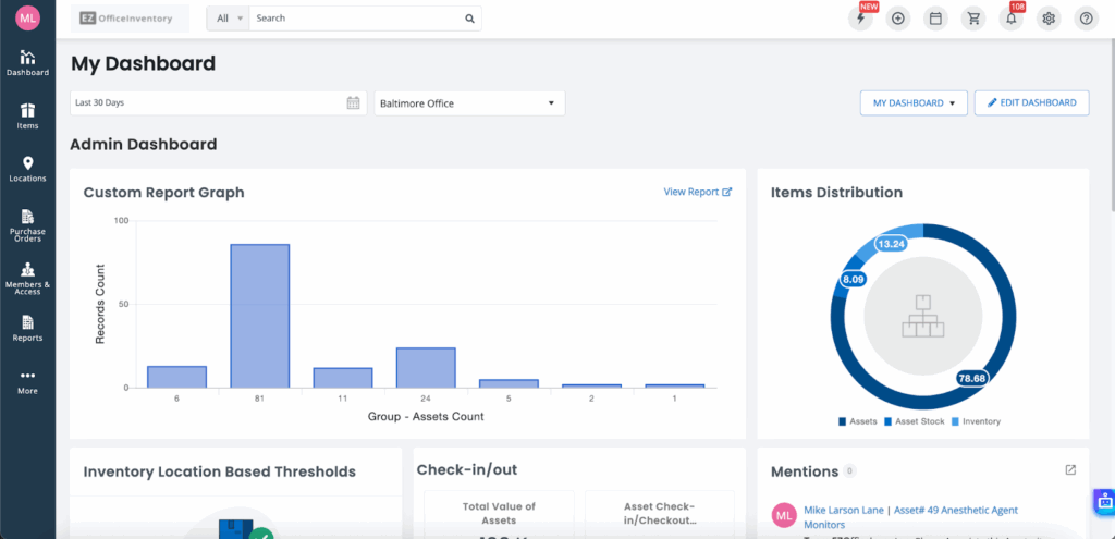 - View essential metrics on assets, inventory, maintenance, and more at a glance.