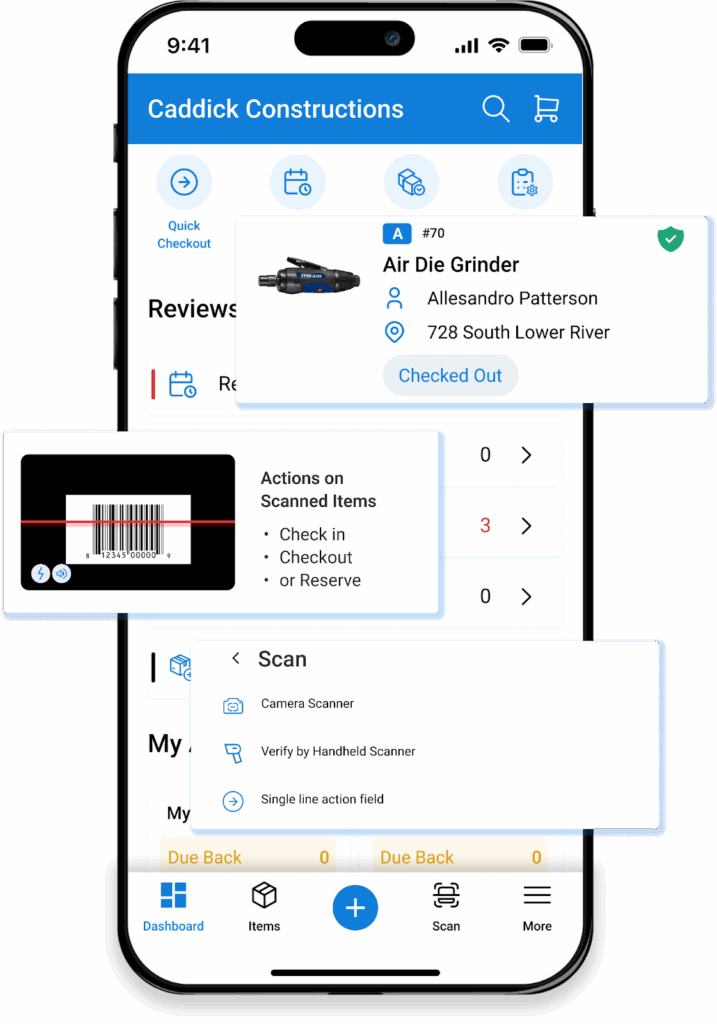 - Quick item center gives you instant access to carry out critical item actions, without the numerous clicks. Instantly checkout/check-in, reserve, move items, or extend checkouts.