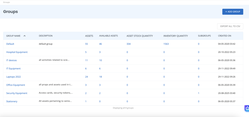 Groups help you organize related items for easier tracking and management in EZO. They act as a central category for assets that share similar attributes, making it simple to manage depreciation, locations, and user associations.