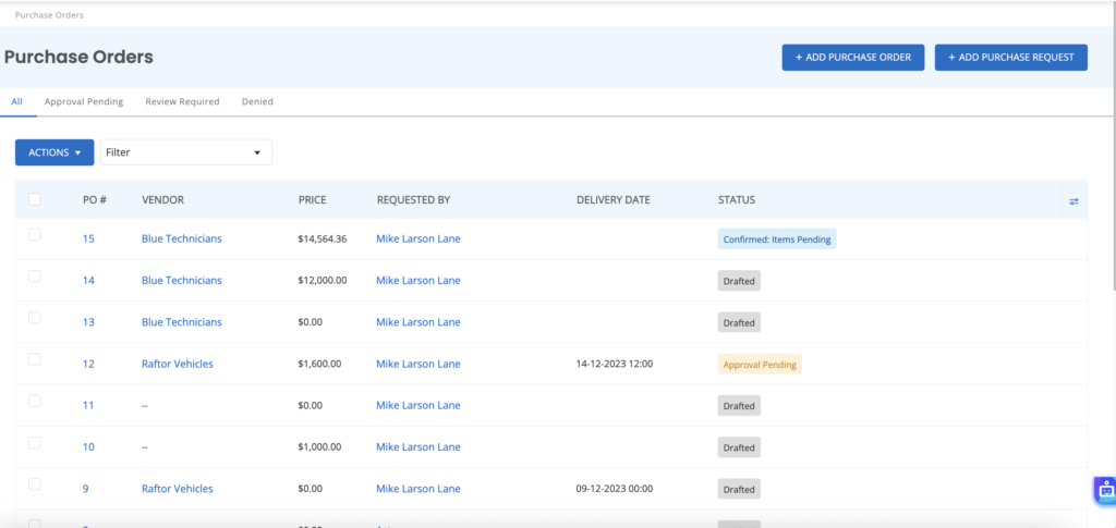 - Monitor PO status (draft, sent, received, closed) to keep workflows on track.
