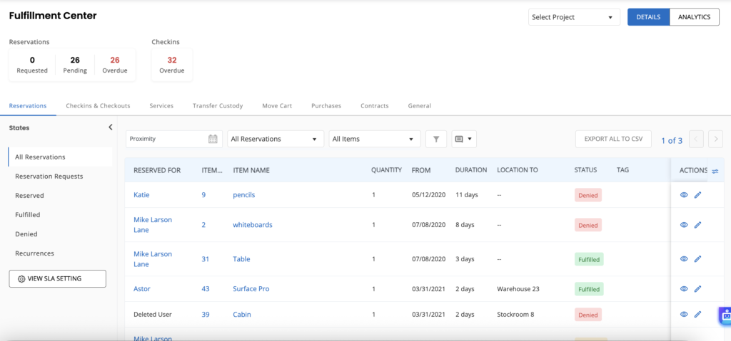 Fulfillment center: A single screen to receive all requests from users without having to chase emails down.