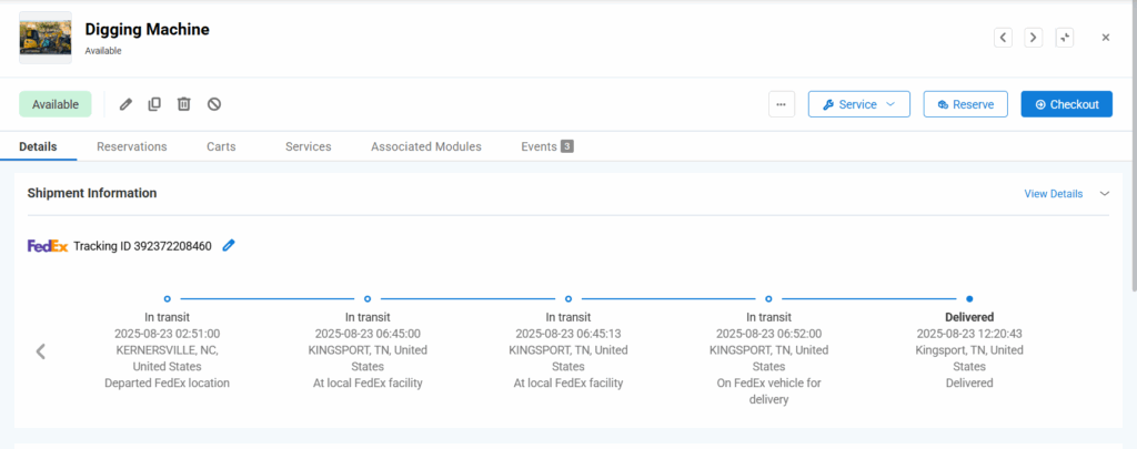 With shipment tracking now tied directly to assets, teams can monitor repair and return workflows without switching tools or manually checking carrier portals.