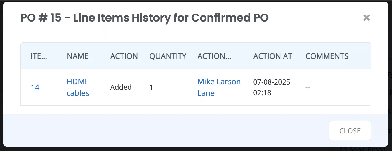Your line item history will give you a holistic insight into the action taken on a given purchase order including the items that have been added, removed or reordered.