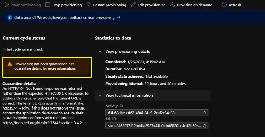Users trying to provision SCIM with EZO may encounter the following error: