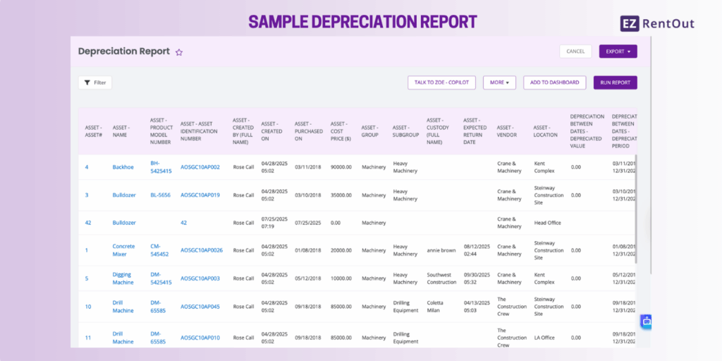 You can also build audit-ready depreciation reports to guide operational and financial decision-making.