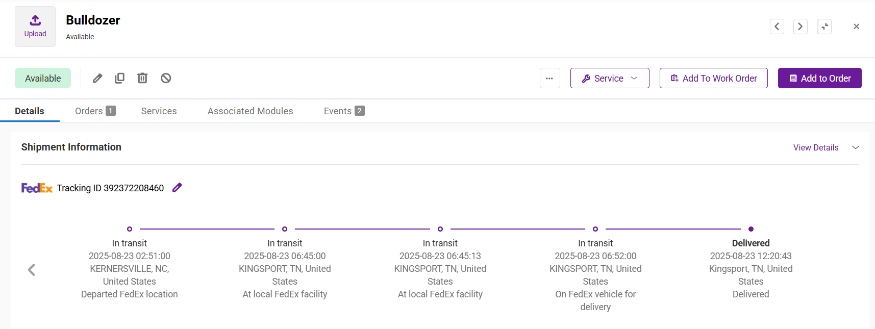 With shipment tracking now tied directly to assets, teams can monitor repair and return workflows without switching tools or manually checking carrier portals.