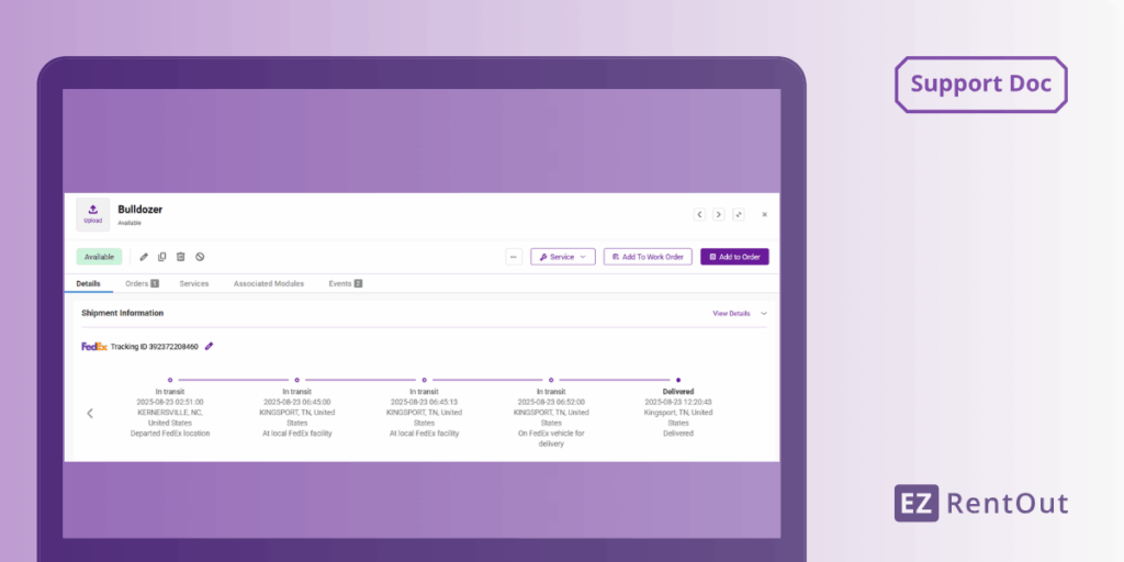 With the FedEx integration enabled, you no longer need to jump between carrier portals to check shipment status. EZRentOut keeps shipment updates tied directly to the asset’s lifecycle—helping you reduce delays, losses, and manual follow-ups.
