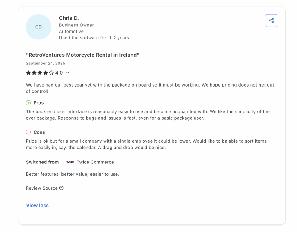 - Limited flexibility for smaller fleets: Rental businesses with smaller or mixed fleets sometimes feel InTempo is built more for large, multi-branch operators and want a lighter, more agile system.