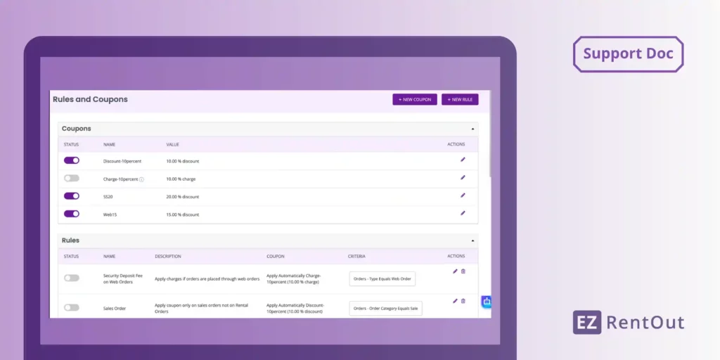 EZRentOut allows you to create and apply discount rules and coupons within the system. Reducing the need for manual updates, you can pre-define and automate discount rules for easier and faster operations. Whether you want to reward loyal customers or offer seasonal promotions, utilize the highly flexible options within EZRentOut to create discounts that best suit your business needs.